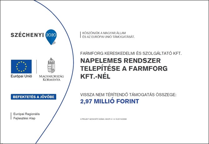 Projekt címe: Napelemes rendszer telepítése a FarmForg Kft.-nél